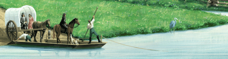 It’s wonderful to have an artist’s interpretation of an 18th century ferry operation across the Rappahannock at Fredericksburg.